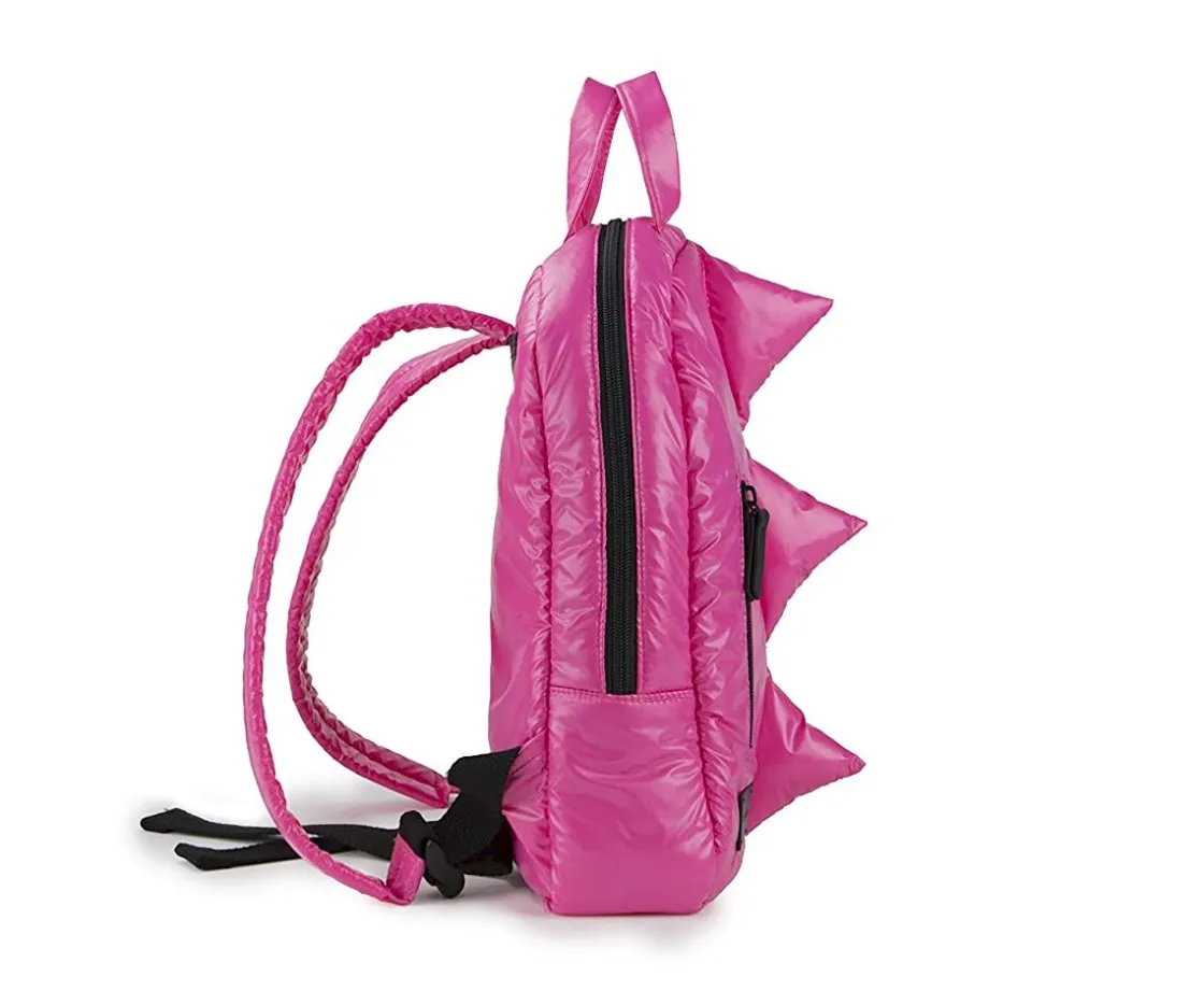 Esta pequeña mochila viene decorada con unos pinchos acolchados que la convierten en un divertido accesorio con temática de dinosaurios. Viene con una variedad de bolsillos interiores y exteriores, lo que facilita que los pequeños lleven juguetes, golosinas y otros objetos en sus aventuras