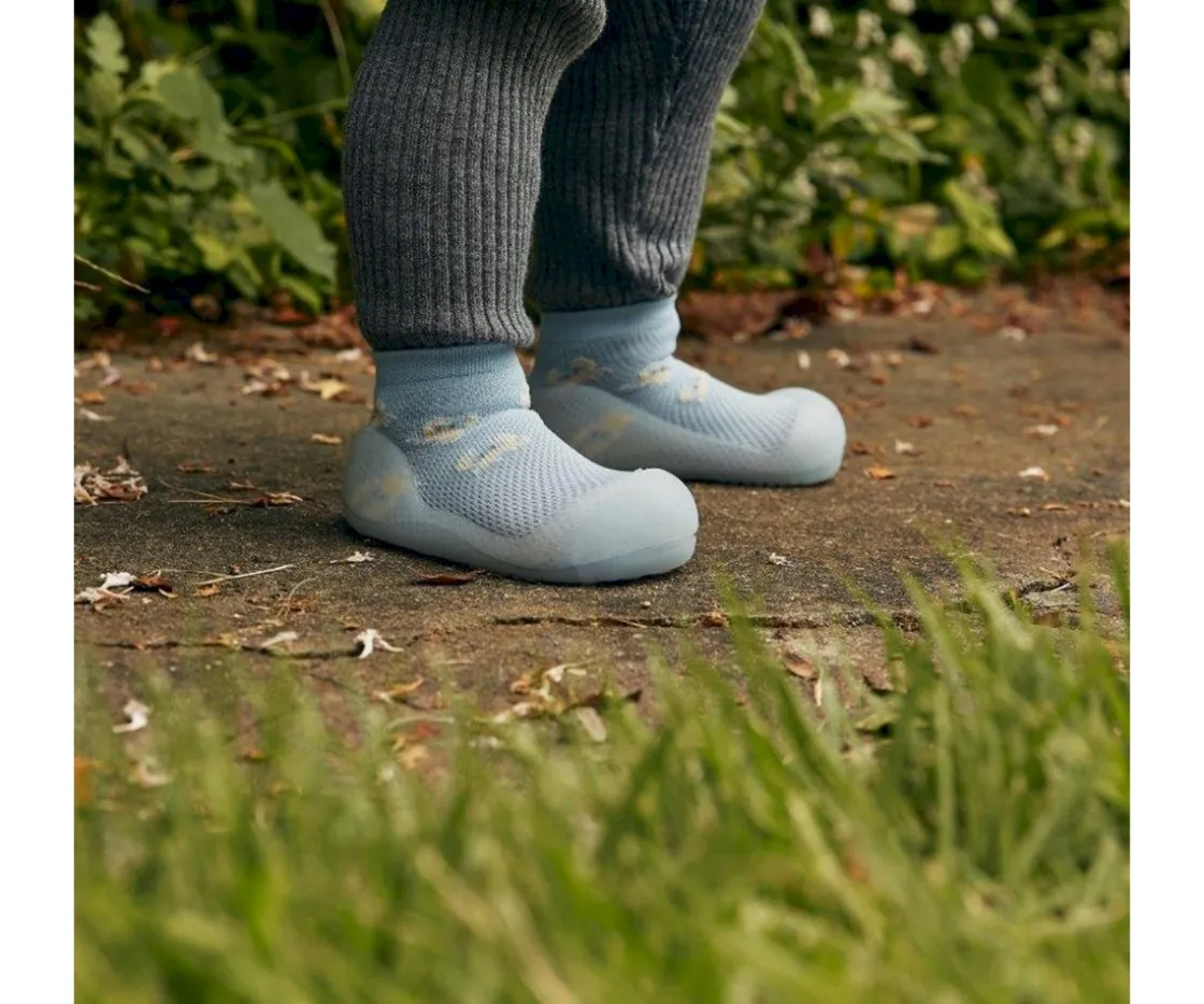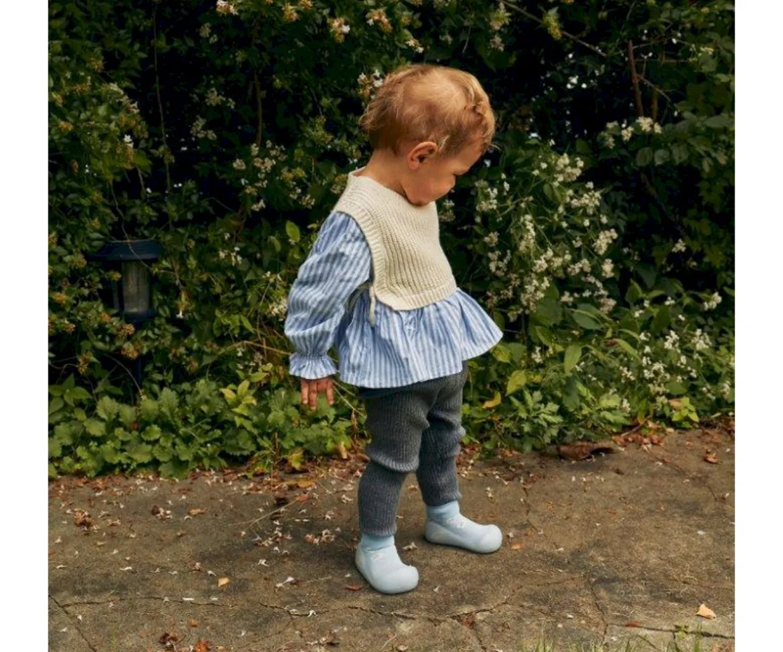 Es un calzado ideal para la fase de gateo y sus primeros pasos, pues ofrece la sensación de andar descalzo y no interfiere en el desarrollo a la vez que protege sus pies.