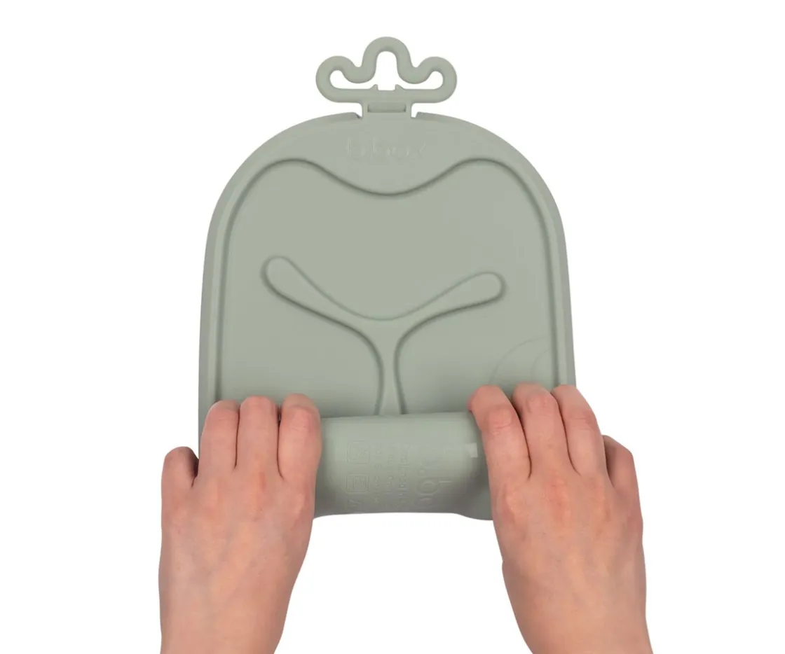 Bandeja de silicona Roll + Go de la marca B.Box, ideal para el aprendizaje de la alimentación independiente y además práctico, ¡lo puedes llevar contigo a cualquier lugar!