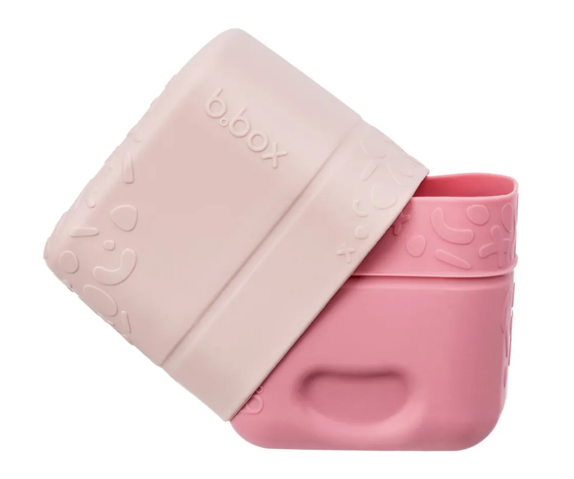 - Recomendación marca: usar los vasitos para snacks a su altura completa solo en las secciones no selladas de tu fiambrera b.box (sección larga y sección para sándwiches) y mini fiambrera (solo en la sección larga)