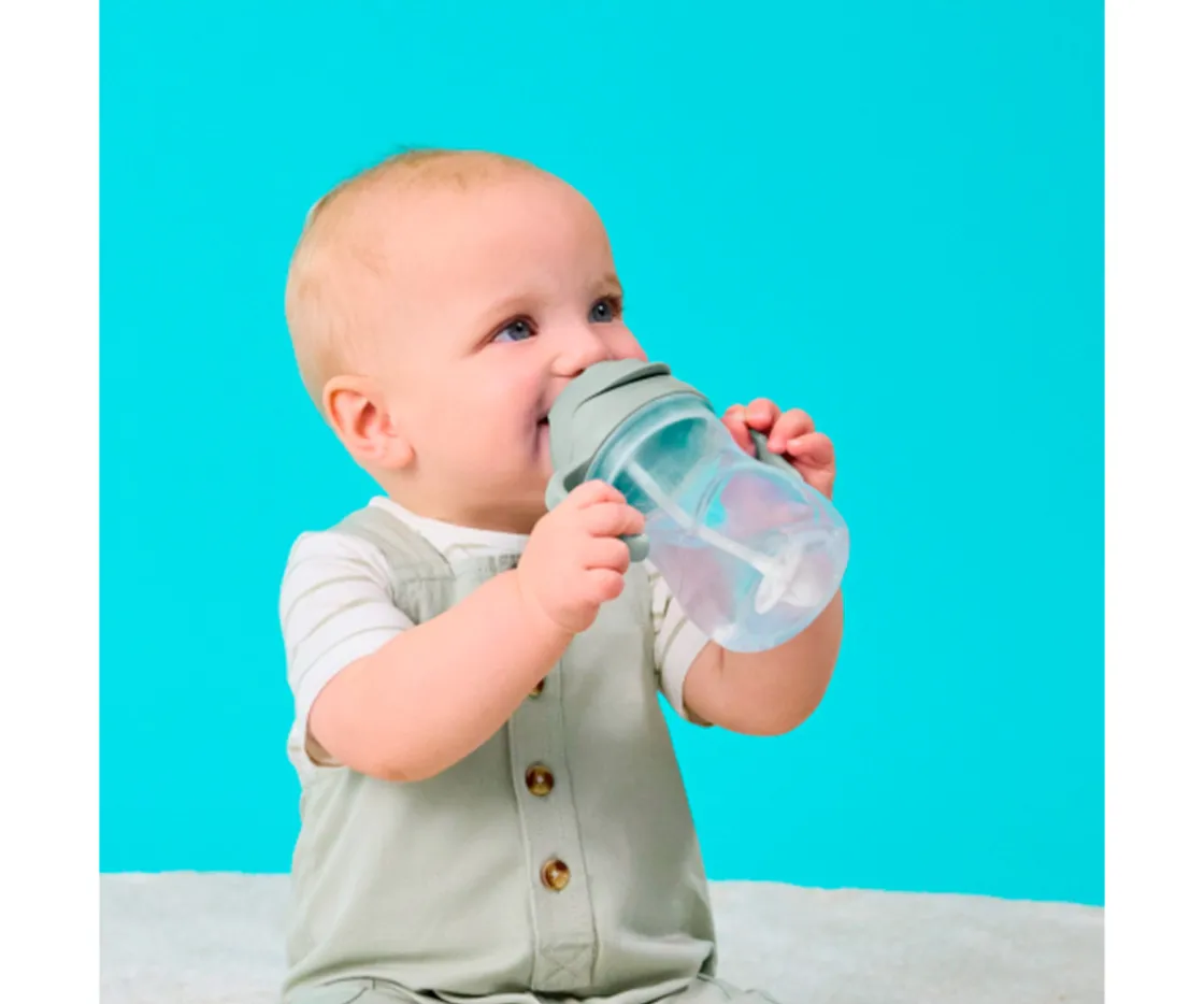 - Incluye: 1 taza + 3 tapas evolutivas (tapa con pajita lastrada para beber en cualquier ángulo, tapa abatible higiénica para mayor autonomía, tapa de flujo libre o controlado)