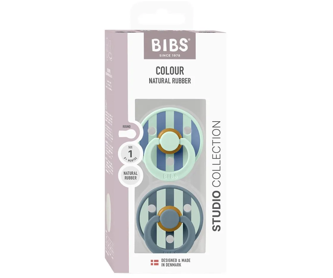 BIBS 2 Chupetes Studio Colour Round Block Nordic Mint Petrol Mix^ Chupetes Con Diseños