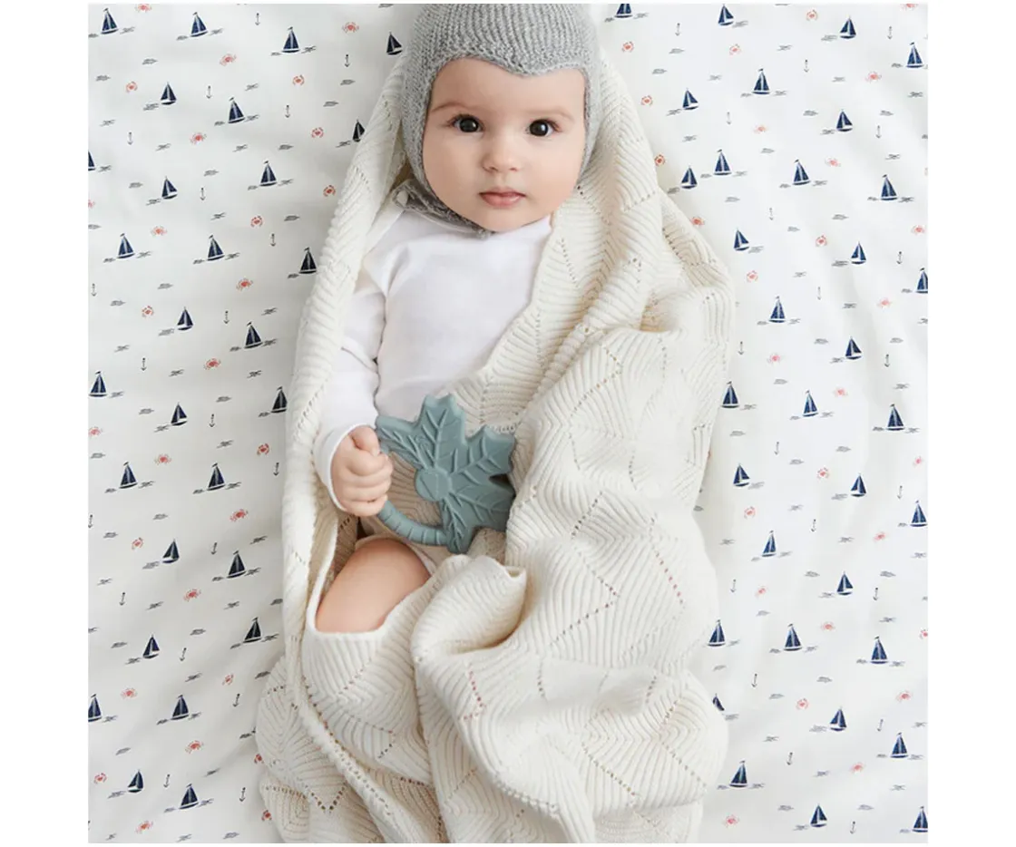 Descubre la manta de punto de Cam Cam, con un tacto exquisito y una suavidad inigualable. Su delicado diseño de ondas la hace única. Confeccionada con algodón orgánico puro, es ideal para paseos en cochecito o para usar en casa. Además, cuenta con la certificación GOTS, garantizando su calidad y sostenibilidad.