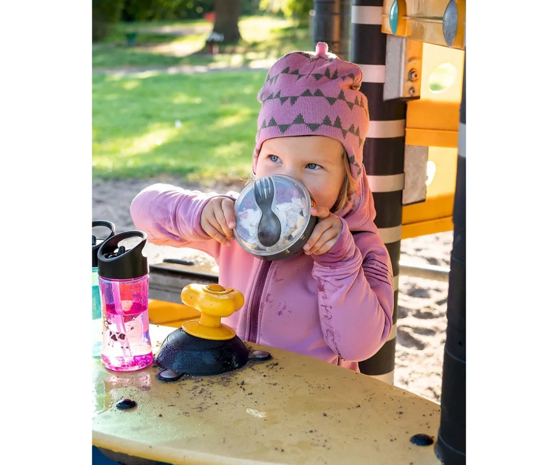 Con dos compartimentos separados, mantiene tus alimentos frescos hasta la hora de comer. Incluye una cuchara/tenedor acoplado a la tapa para una mayor comodidad.