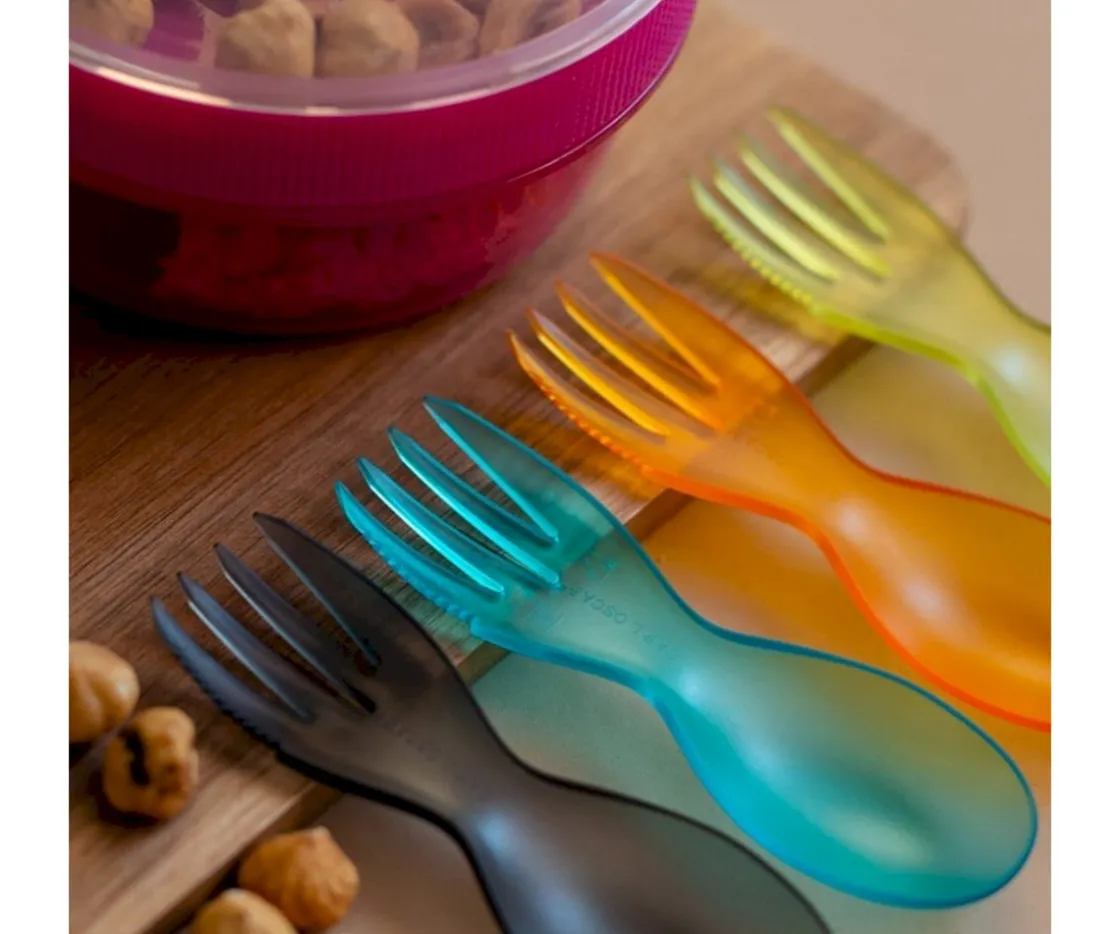 El multi cubierto CUTElery de la marca Carl Oscar es compacto y cómodo de usar para niños y adultos. Con diseño 3 en 1 de cuchara, tenedor y cuchillo, es perfecto para llevar en la fiambrera, bolso o mochila de excursión.
