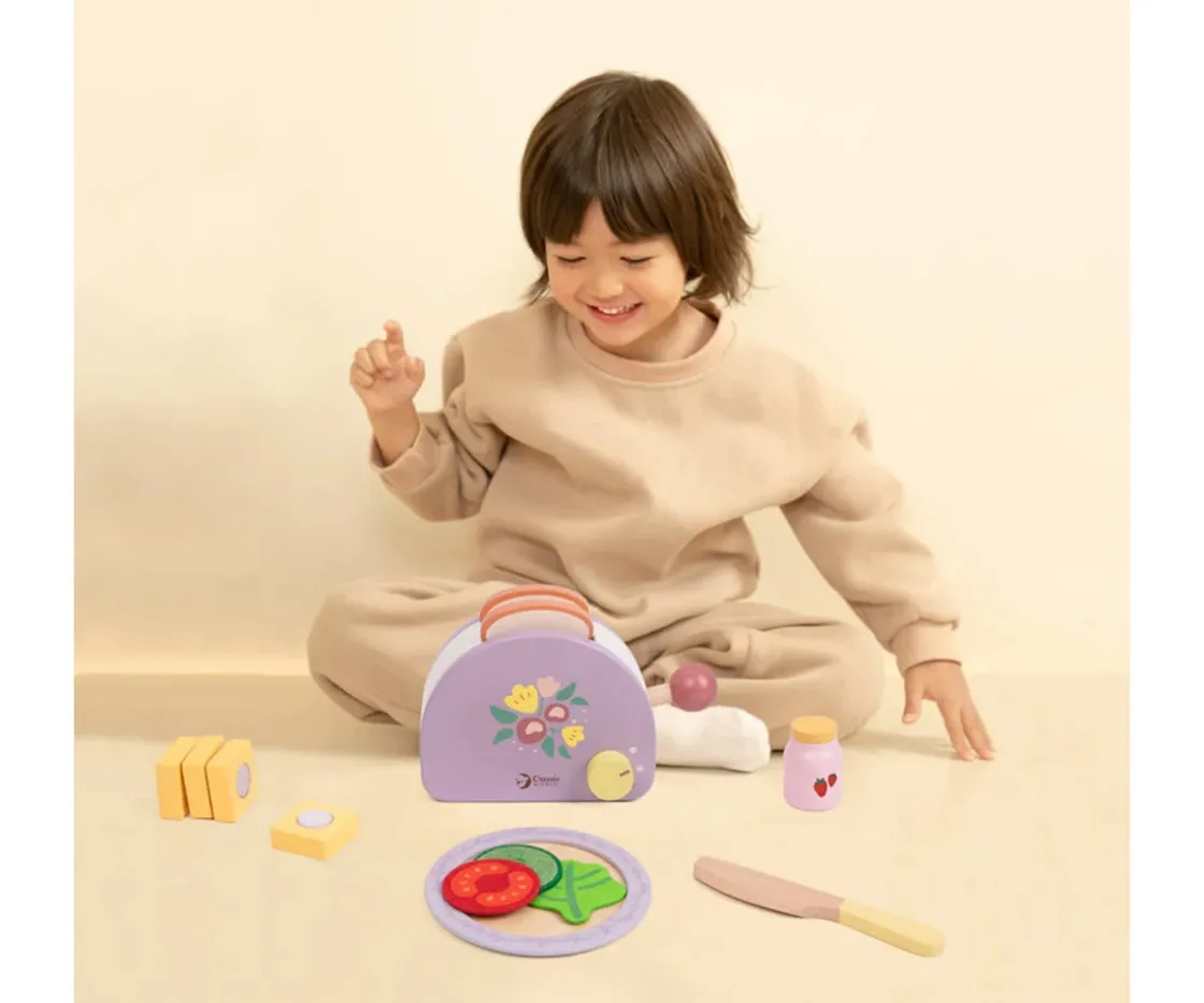 Con este tostador, niños y niñas pueden aprender la importancia de una alimentación equilibrada mientras se divierten imitando rutinas del día a día.Además la manivela lateral se puede mover de arriba a abajo.