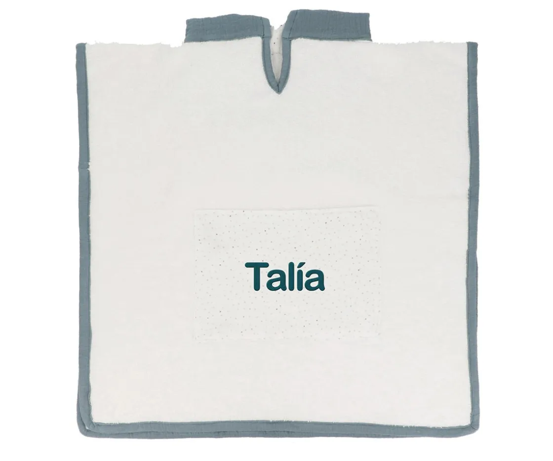 Con este poncho de Cristina de Jos´h, los peques estarán bien arropaditos cuando salgan del baño. Este poncho cuenta con un bolsillo deltantero que se puede personalizar con el nombre del peque para hacerlo único y especial.
