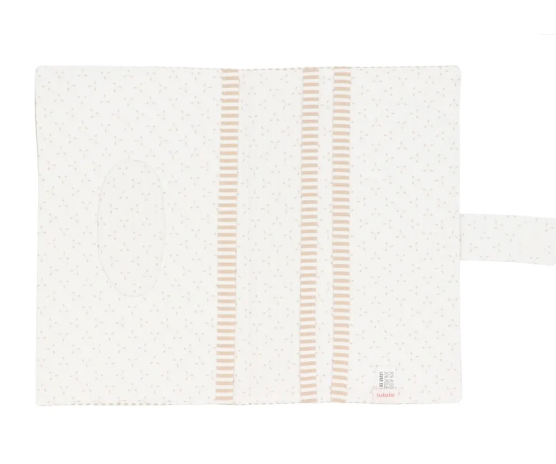 Con esta funda portatoallitas podrás tener las toallitas húmedas a mano y pequeños accesorios del bebé cómo algún pañal de repuesto bien organizado.