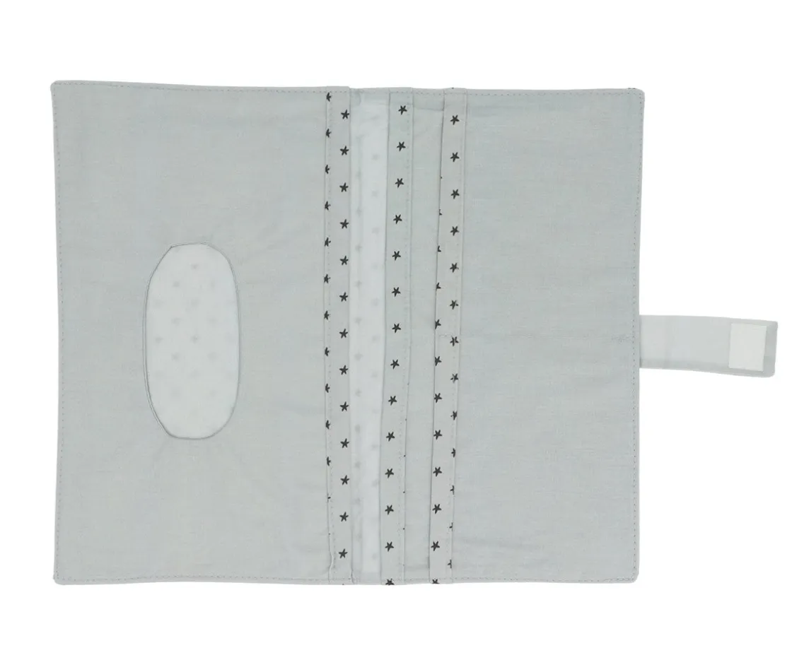 Con esta funda portatoallitas podrás tener las toallitas húmedas a mano y pequeños accesorios del bebé cómo algún pañal de repuesto bien organizado.