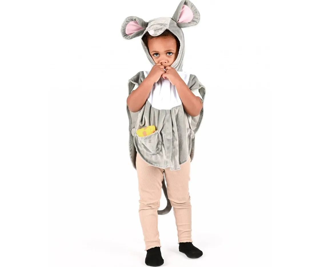 Disfraz de un adorable ratoncito para que los peques se lo pasen en grande en Carnaval, fiestas o en cualquier ocasión. Su capucha está cosida, las orejas y la cola están acolchadas para dar mayor efecto e incluye un trozo de queso para dar más realismo al disfraz.