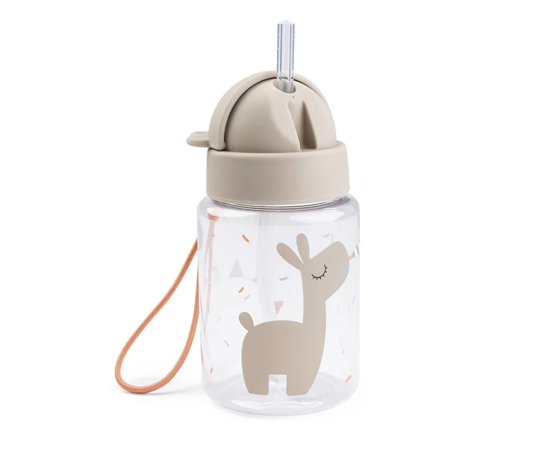 Práctica botella con pajita incluida para que tu peque pueda llevarla en la mochila al colegio, parque o cualquier lugar.