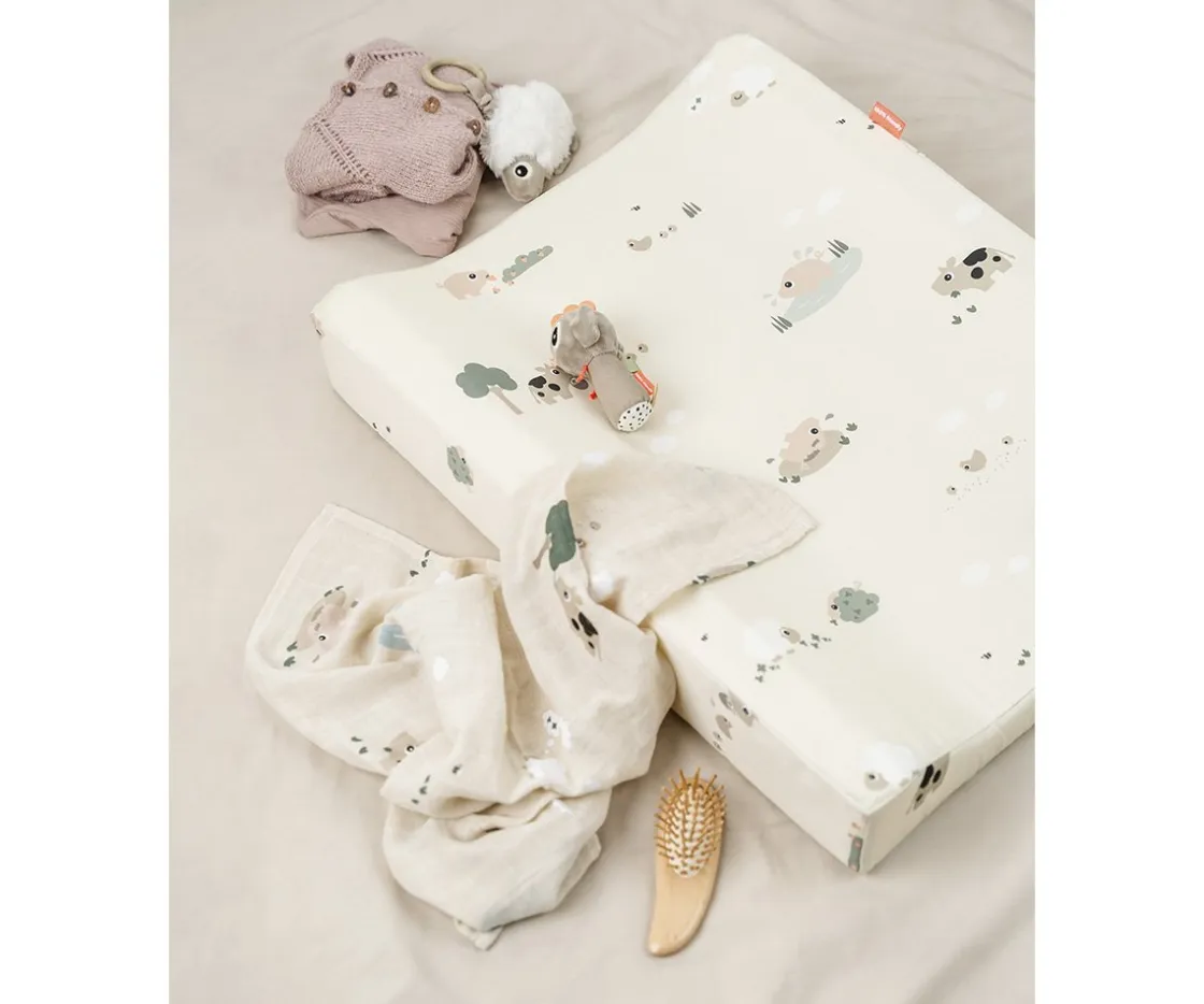 Con suave revestimiento impermeable, este bonito cambiador de la colección Tiny Farm de Done by Deer dará un toque alegre en la habitación del bebé.