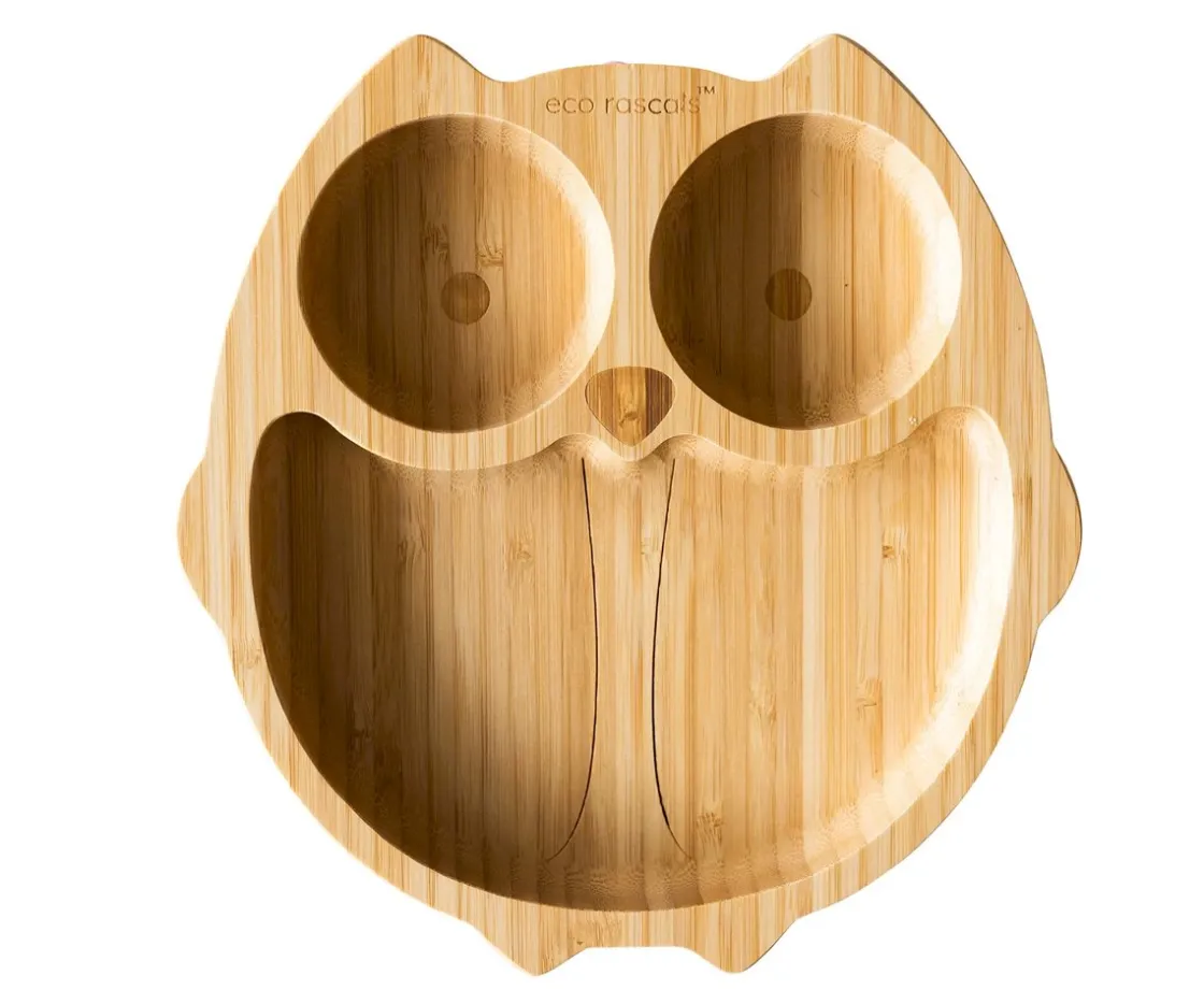 Ecorascals Plato Bambú con Ventosa Búho Verde^ Vajilla Infantil