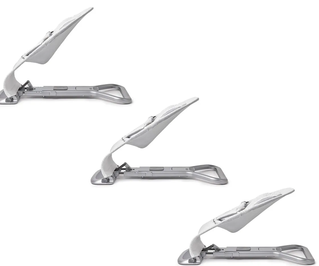A medida que el bebé va creciendo se puede quitar el cojín y elegir una de las tres alturas adaptadas al crecimiento que tiene. La posición intermedia permite que los bebés se mezan sólos gracias a la tecnología de balanceo natural, y la posición más alta es perfecta para usarla como silla. La posición de viaje te permite plegarla para transportarla fácilmente.