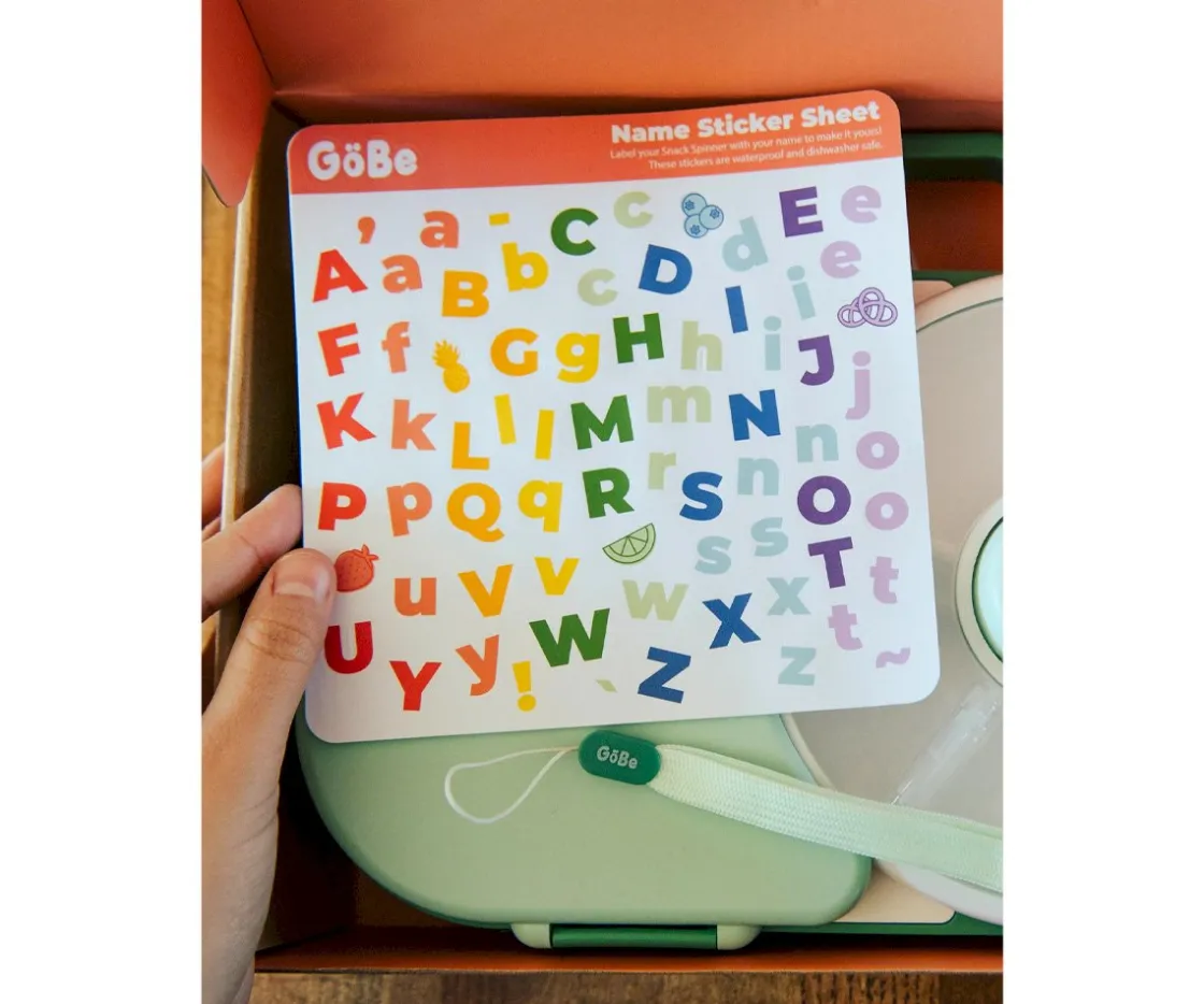 Snack Spinner de la marca GöBe es ideal para llevar una gran variedad de snacks, frutas y verduras, a cualquier lugar y sin riesgo de derrames. La correa de mano es perfecta para que los peques la transporten fácilmente y con la hoja de pegatinas podrás personalizarla con el nombre de tu peque.