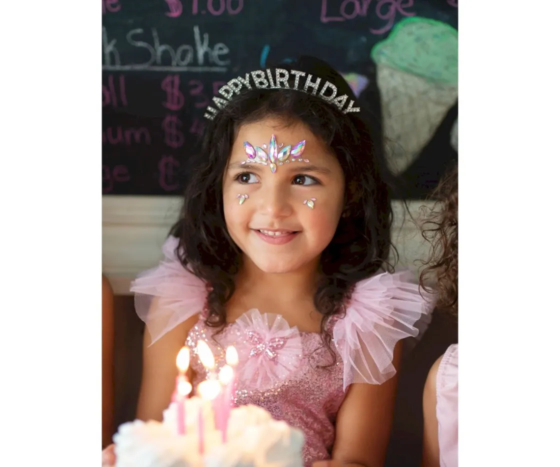 Las fiestas de cumpleaños serán aún más divertidas y brillantes con esta diadema con las palabras Feliz Cumpleaños, adornada con diamantes de imitación.