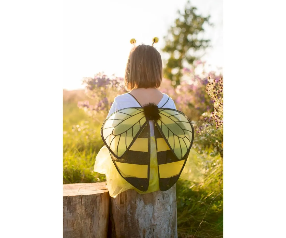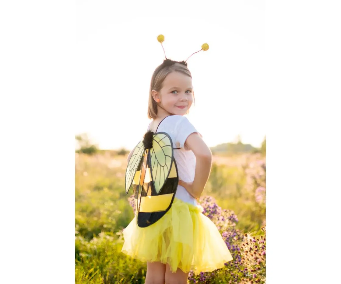 Con este precioso disfraz los más peques se convertirán en adorables abejitas. Incluye 3 piezas que son una falta tutú, alas y una diadema.