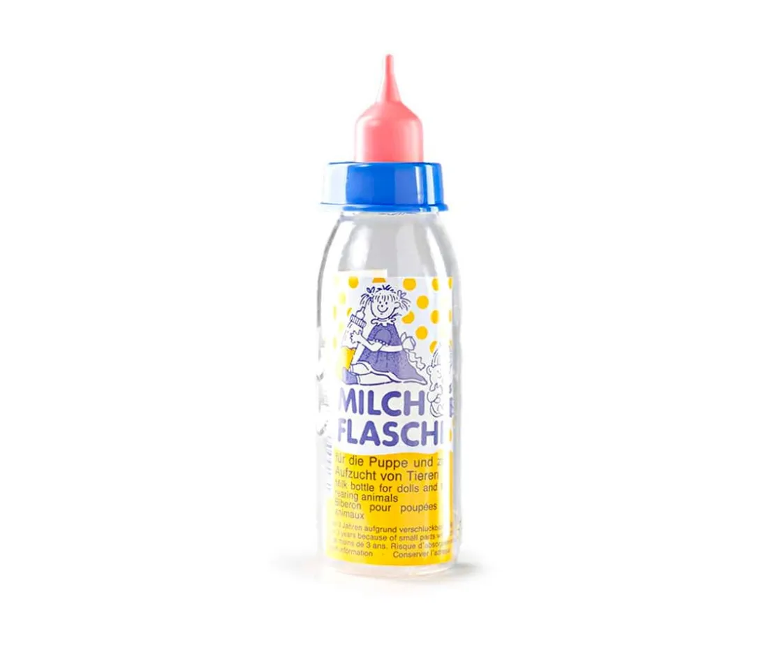 Con este biberón con cierre de rosca para abrir y cerrar fácilmente los peques podrán alimentar a sus muñecos preferidos. La boquilla tiene una pequeña abertura en el extremo.