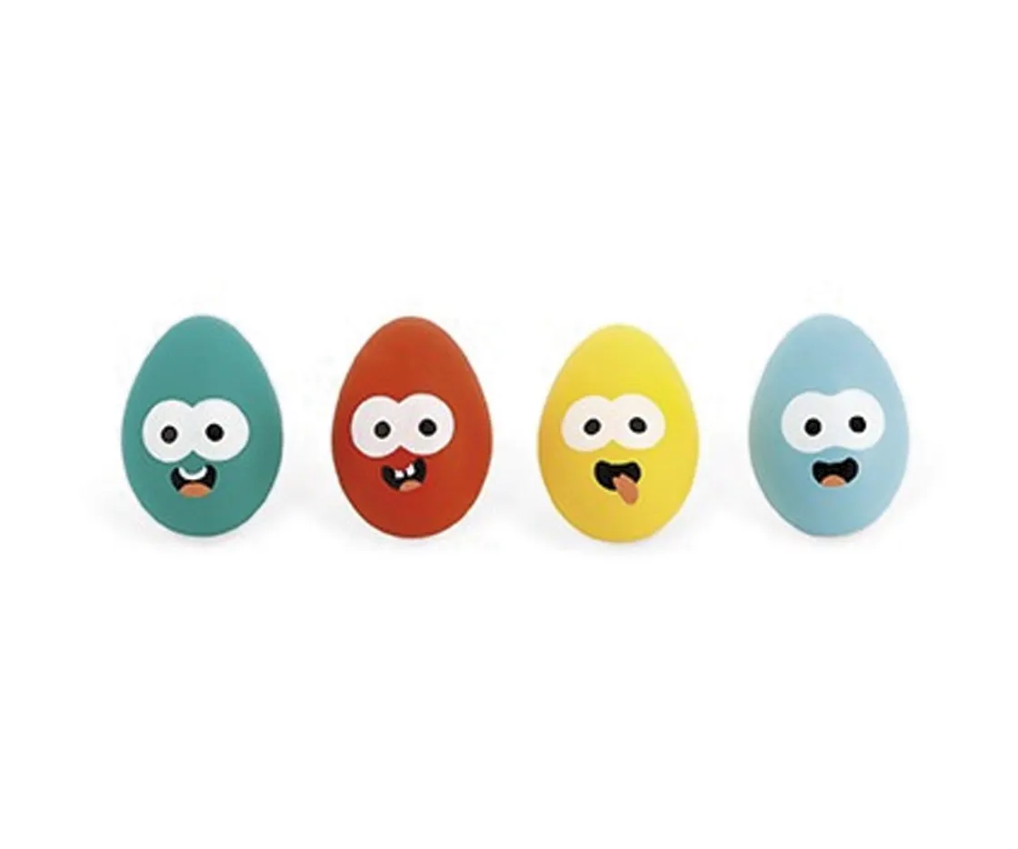 - Incluye: 4 cucharas, 4 huevos de colores