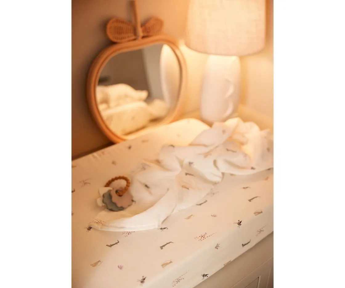 Esta funda suave de tela de jersey es muy práctica gracias a la banda elástica que hará que quede ajustada al cambiador.
