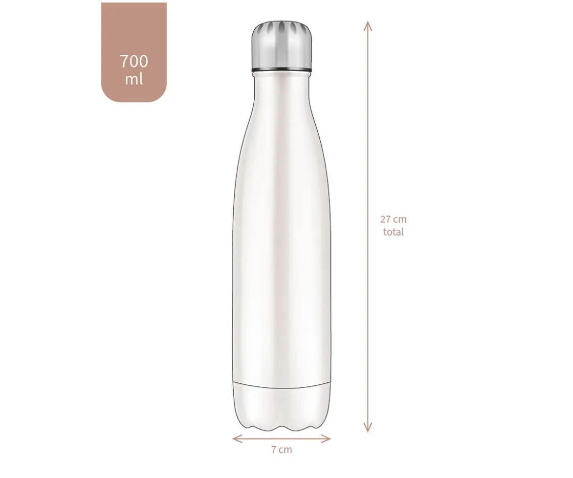 Esta adorable botella de acero de 700 ml es perfecta para acompañar a los peques en sus aventuras diarias, ya sea en el colegio, de excursión o en actividades deportivas.