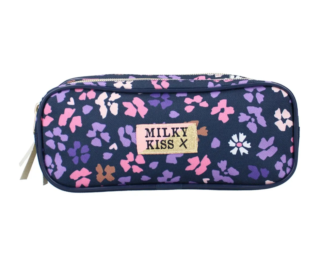 Kidzroom presenta el estuche de la colección Milky Kiss con dos compartimentos con cierre de cremallera, para que los peques mantengan todos sus lápices bien organizados.