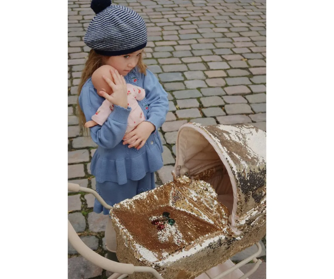 La muñeca de cuerpo blandito Elisa de Konges Slojd, es adorable y se convertirá en la mejor amiga de tu peque.Lleva puesto su chupete y un conjunto de pantaloncito y camiseta de manga larga con estampado de flores.