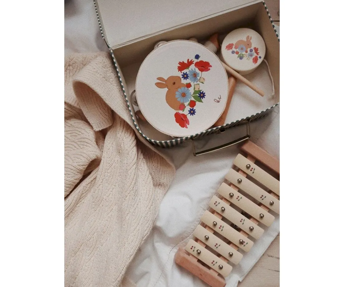 Encantador xilófono musical de madera de Konges Slojd, perfecto para los más pequeños. Con sus vivos colores y simpáticos detalles, su estética captará la atención de todos.