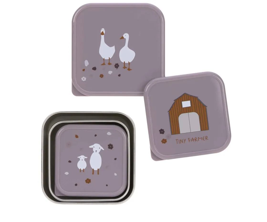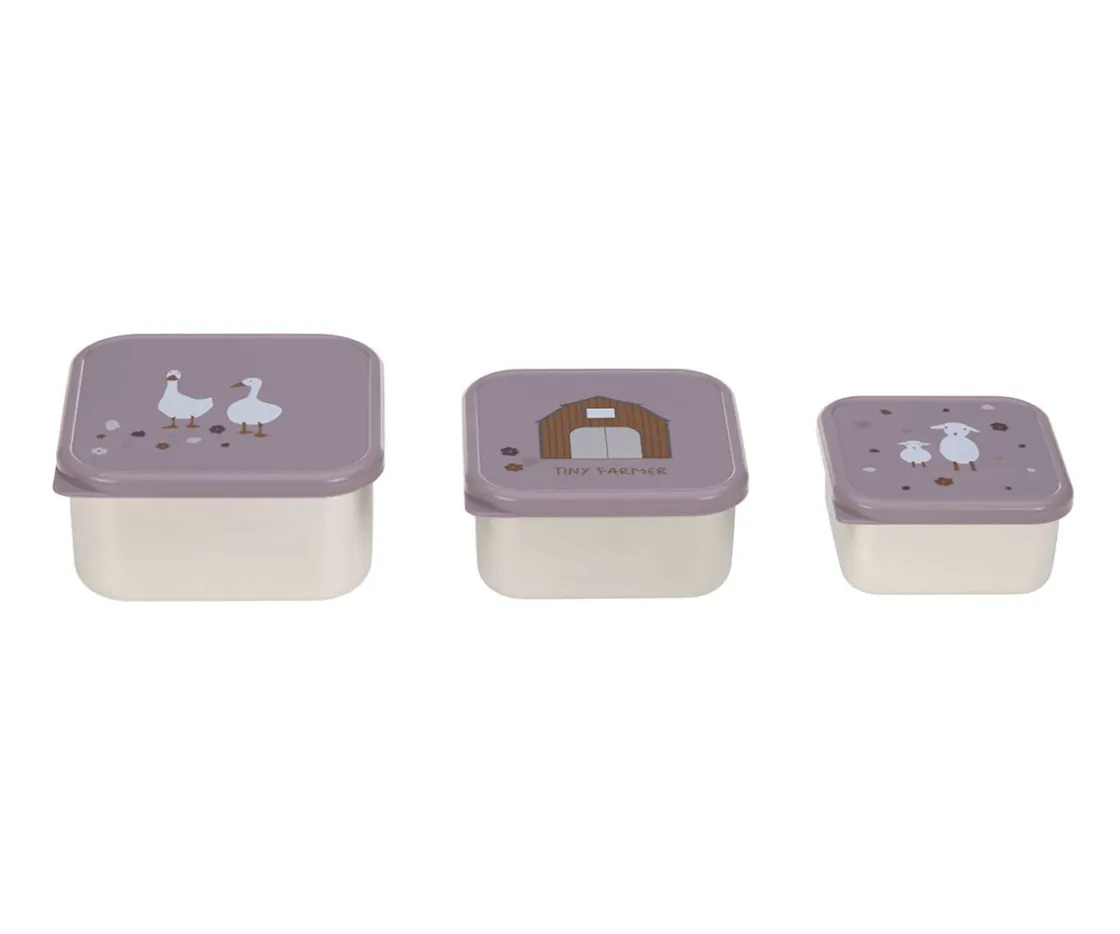 Set de 3 cajas almuerzo para llevar pequeños snack al cole. Además se pueden apilar una dentro de otra, cuando no estén en uso, y ahorrar espacio.