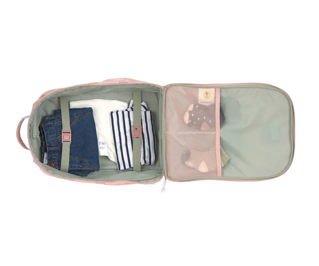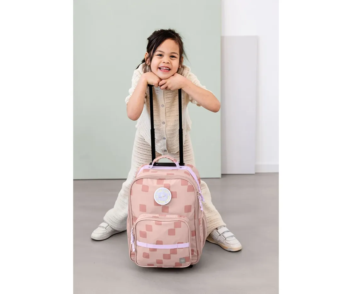 Maleta infantil LÄSSIG en color rosa de la colección Pattern Party con gran espacio para que tu peque esté listo en cualquier viaje.
