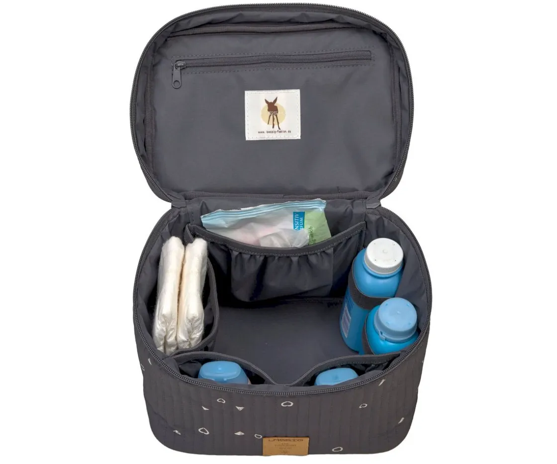 El neceser de la colección Universo Anthracite de no sirve solamente cómo bolsa de almacenaje para el cambiador, sino también es un práctico neceser para transportar a cualquier viaje.