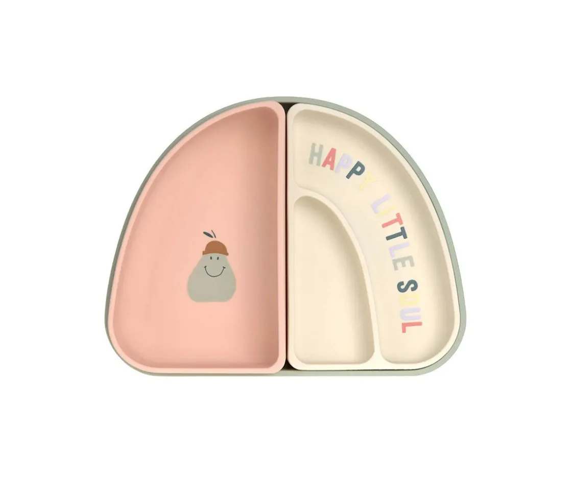 Set de 3 platos de silicona en forma de arcoíris de LÄSSIG, se pueden dividir en 2 cuencos y un plato de forma individual. Fácil de apilar y perfectos para que los peques coman de forma autónoma.