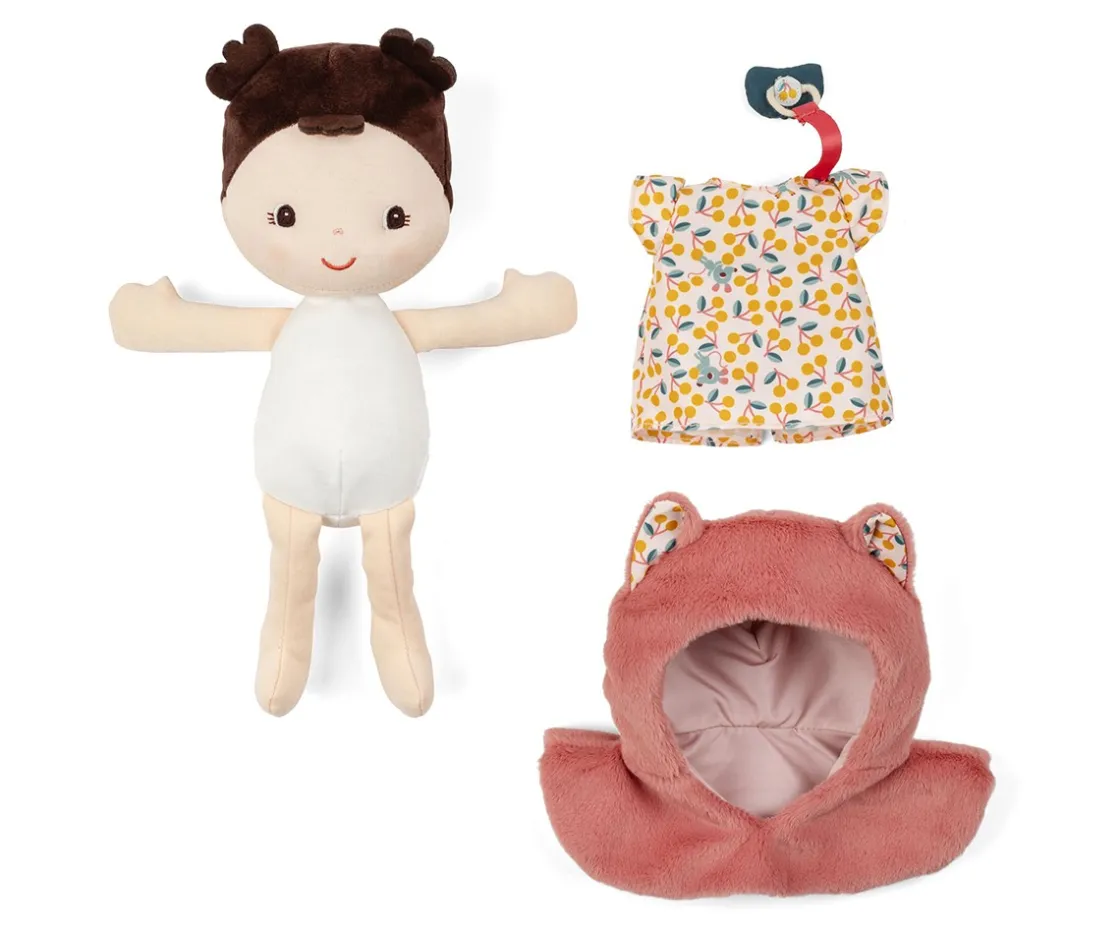 - Incluye: mochila portabebés, muñeca Jeanne, chupete magnético,capa de tela con forma de gato