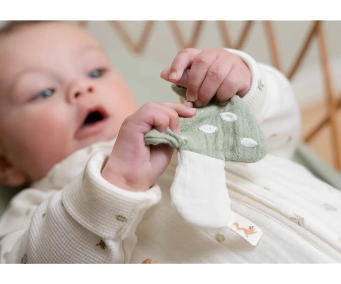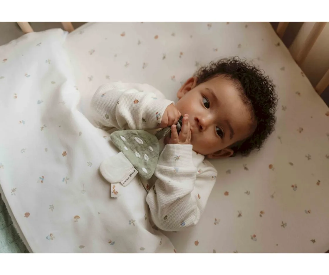 Bonito y original chupetero en forma de seta con textura suave en tono beige y sage de Little Dutch, perfecto para regalar a un bebé.