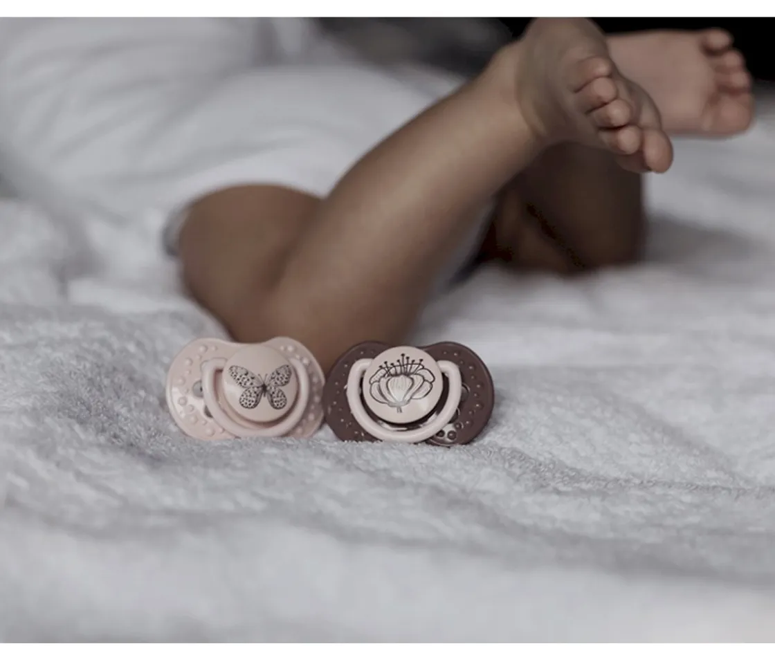 Fomenta el reflejo de succión saludable. Su forma exclusiva y su tetina dinámica ayudan a respirar libremente a través de la nariz y tragar saliva; evitan el reflejo de morder el chupete y permiten el desarrollo correcto del habla y del encaje de los maxilares (siguiendo las recomendaciones de especialistas en ortodoncia y logopedia).