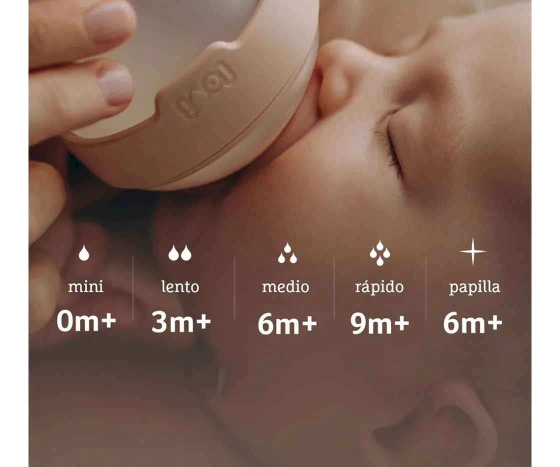 - Tetina disponible en diferentes flujos que se adaptan al desarrollo de los peques