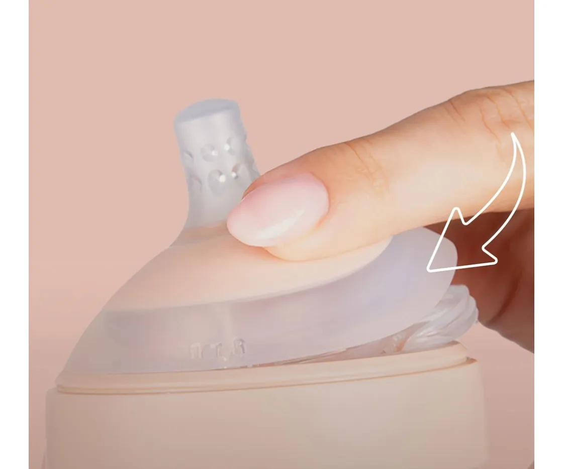 Es tetina dinámica por lo que no altera el refeljo de succión, por lo que el bebé podrá vovler libremente a lactar del pecho de mamá. Es anticólicos, pues el bebé sella los labios y respira por la nariz, y considera todas las sensaciones del bebé acostumbrado a lactar como calor, tacto de la piel, forma y color familiares.