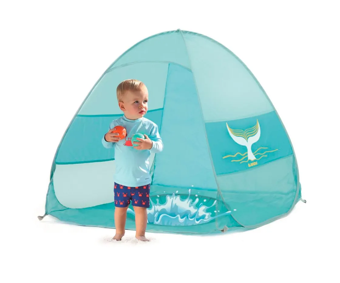 La tienda con piscina y protección UV50+ de Ludi es un espacio en el que los peques lo pasarán en grande protegidos de los rayos de sol, el viento y bien fresquitos metidos en el agua de su piscina.
