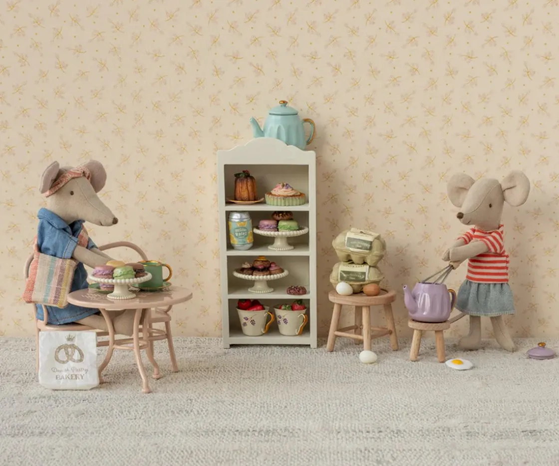 Los ratones papá y mamá disfrutarán de unos deliciosos desayunos y meriendas en la mesita con silla para café de Maileg.