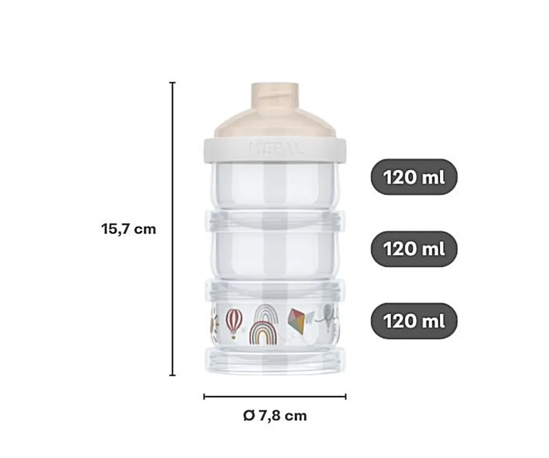3 contenedores de leche en polvo Mio Forest Friends de Mepal. Se apila fácilmente, su cierre es hermético e incluye tapa dispensadora.