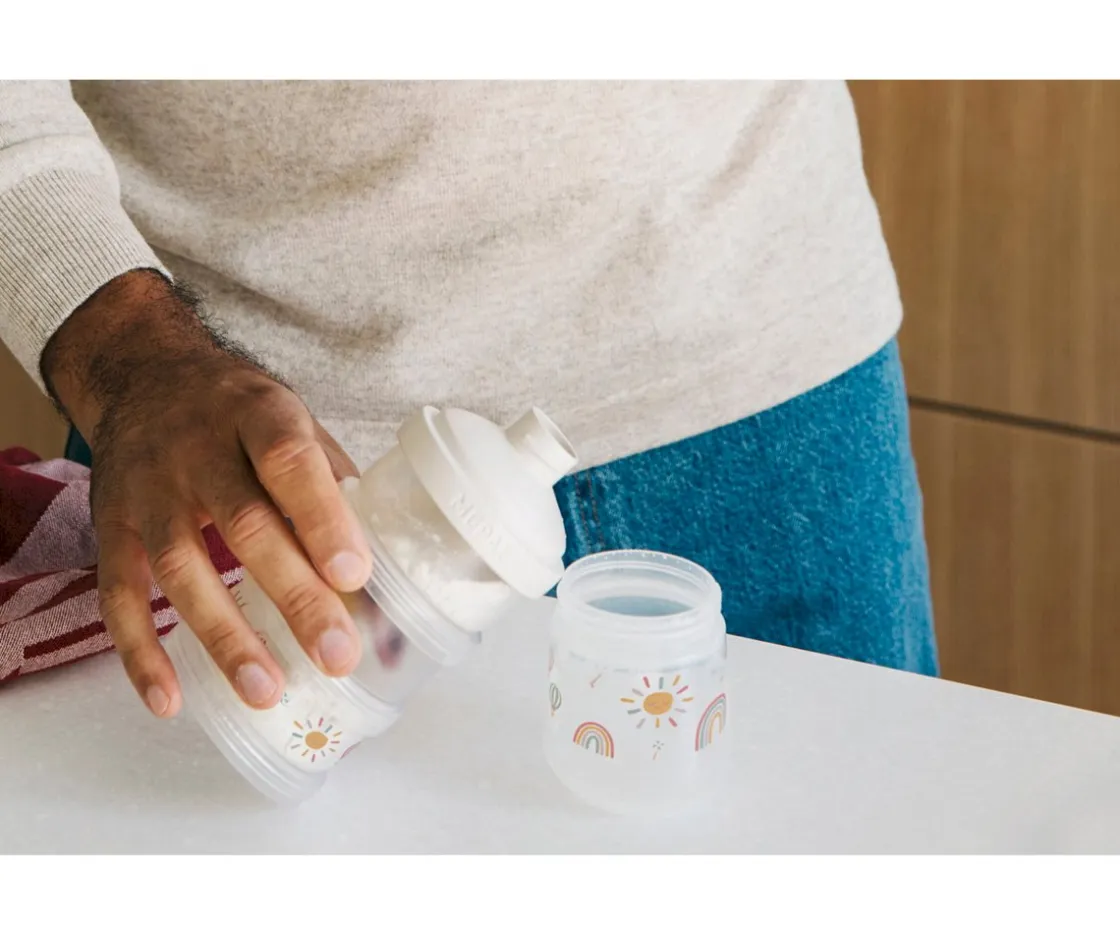 3 contenedores de leche en polvo Mio Sunshine & Rainbow de Mepal. Se apila fácilmente, su cierre es hermético e incluye tapa dispensadora.