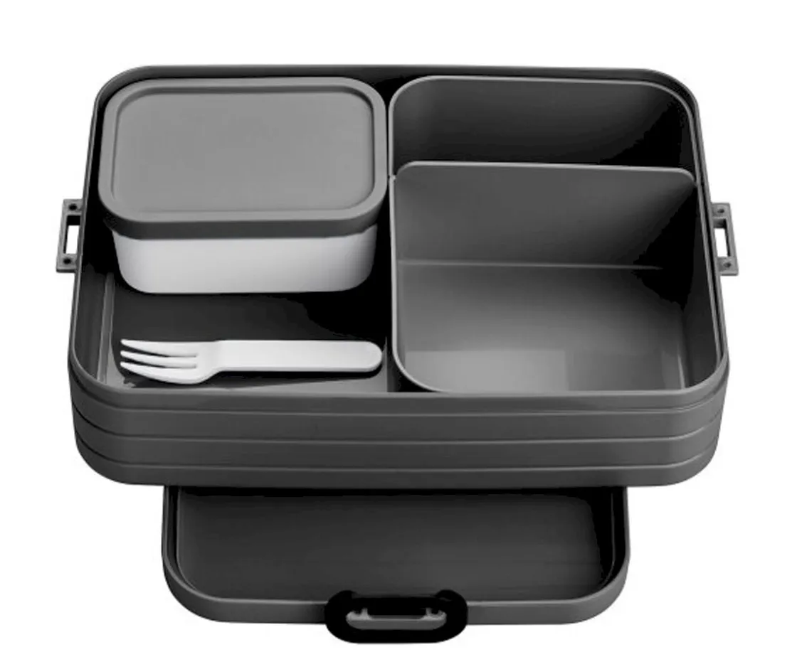 En esta caja almuerzo bento, todo se mantiene separado en los diferentes compartimentos.