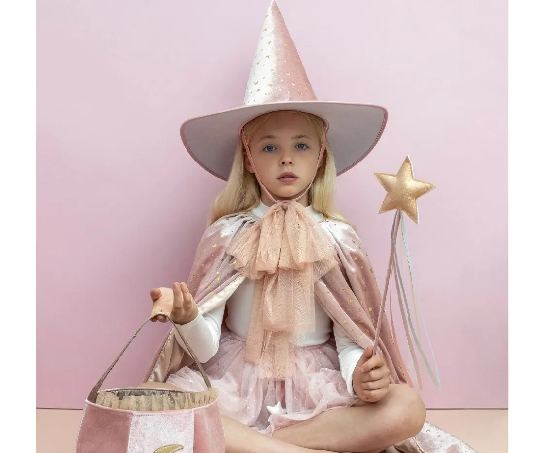 - Terciopelo rosa supersuave con apliques de luna y estrella dorados