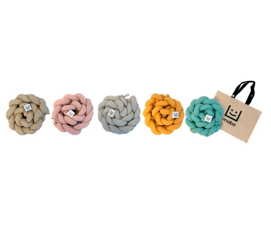 Este original protector de cuna en forma de trenza es perfecto también como chichonera y cojín de lactancia.