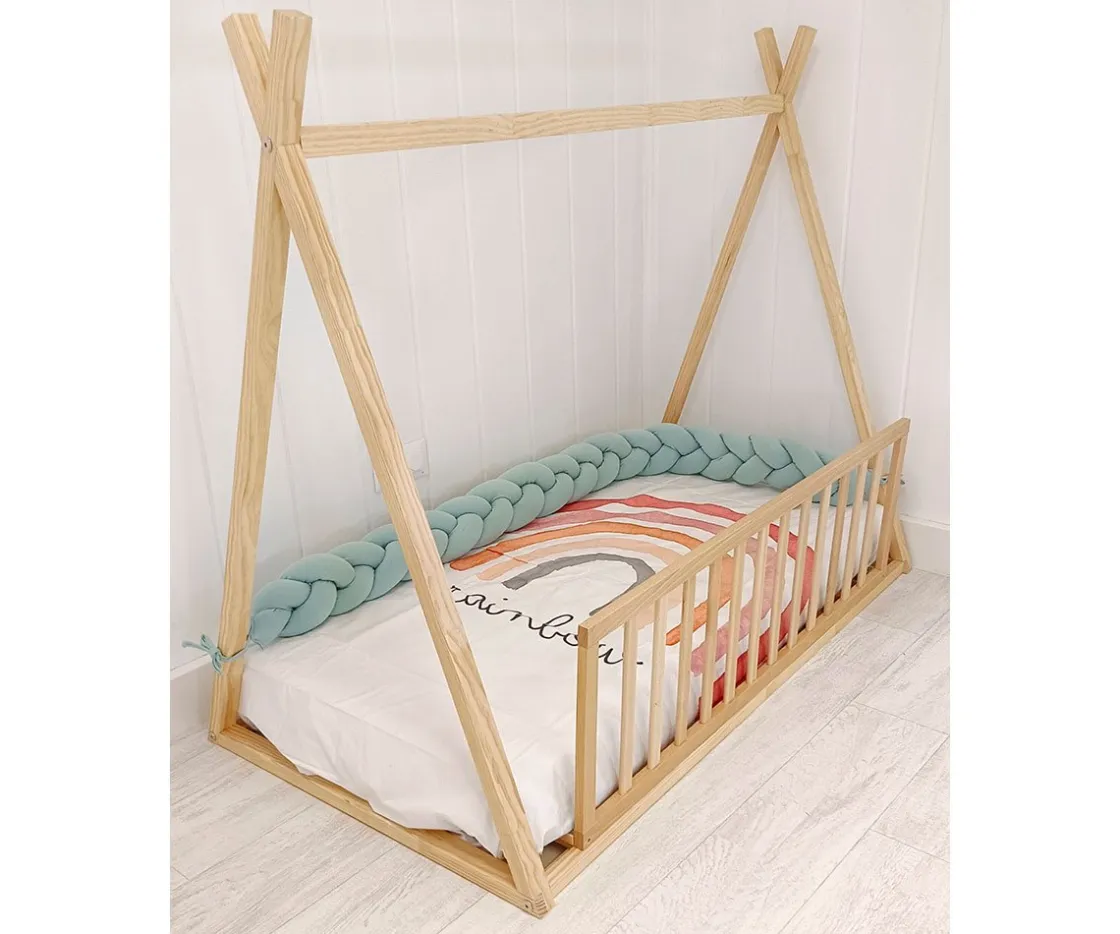 Es fácil de colocar atando los lazos,incorporados en las dos extremidades, a los barrotes o listones de la cama tipi.