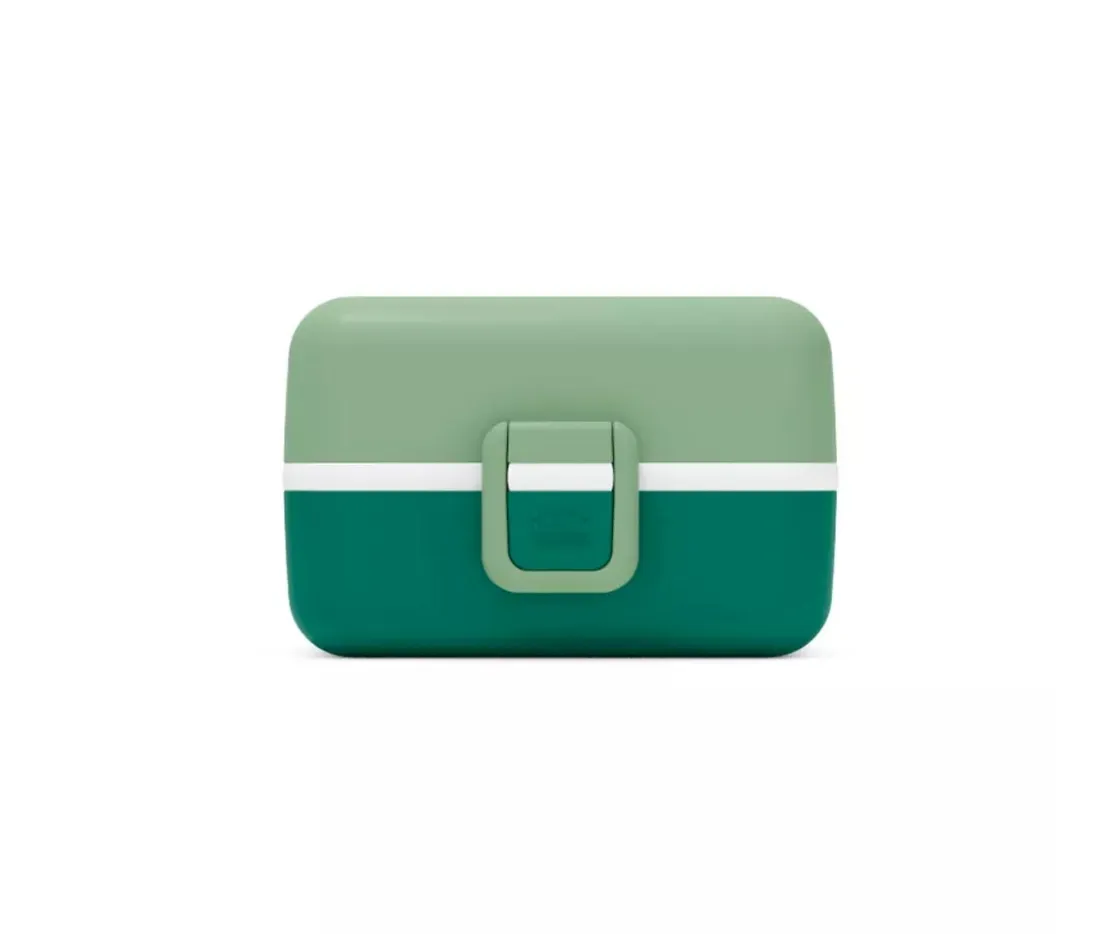 Caja de almuerzo donde podrás llevar entrante, segundo y postre. Una caja fácil de abrir gracias a sus prácticos cierres de clic y hermética para mantener la comida. Esta caja de almuerzo compacta con diferentes compartimentos incluye fichas ilustradas para colocar en la parte superior de la cajita y así tu peque se divertirá viéndola.