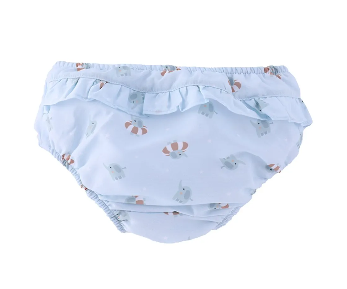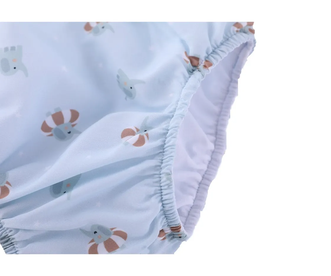 Bañador pañal de la colección Baby Elephant de Monnëka que ha sido creado con una tela especial que protege a la piel de los rayos solares además que evita fugas sólidas cuando el peque se está bañañdo en la playa o la piscina.