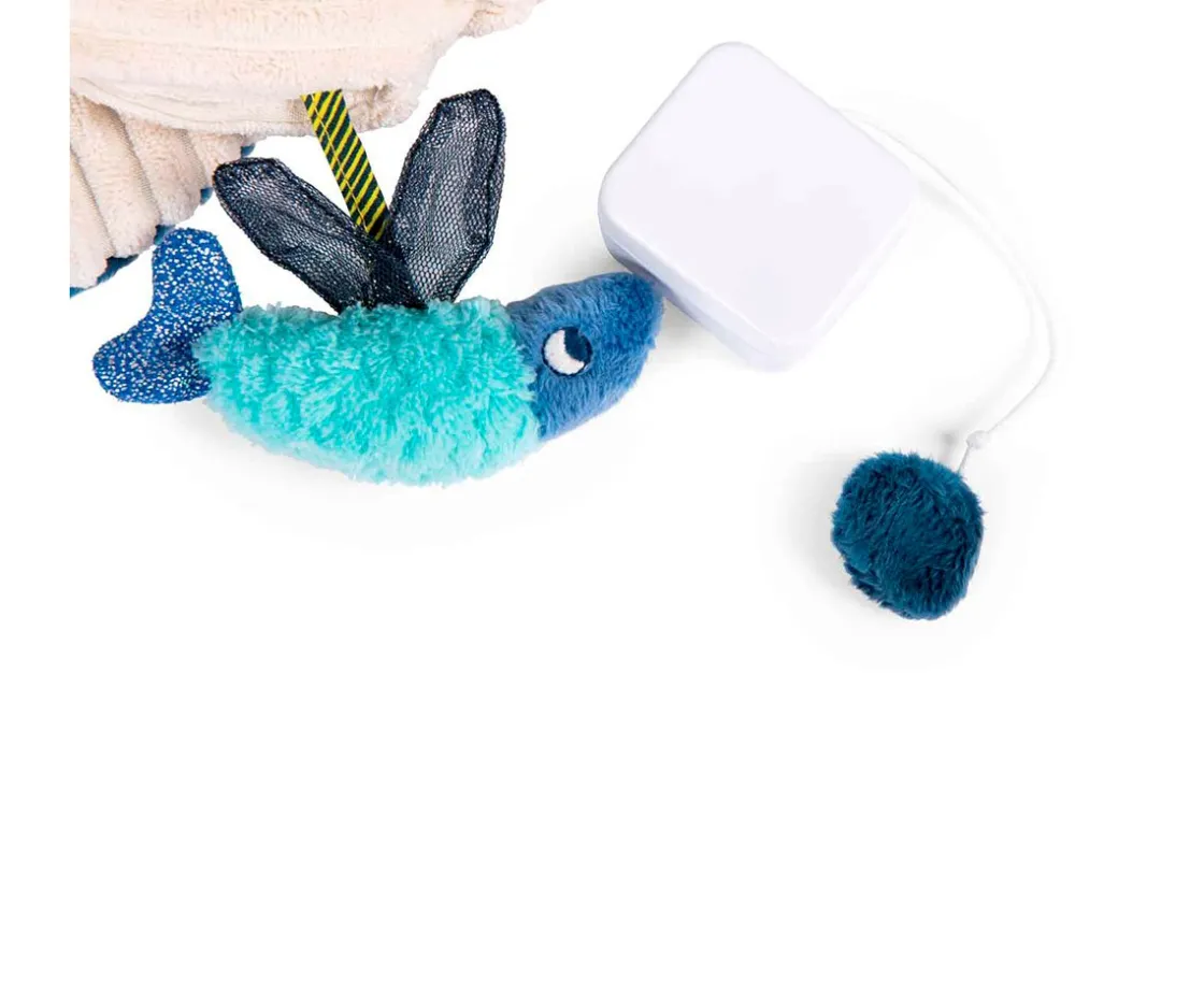 - Tiene una anilla para poder enganchar en el carrito y la cuna