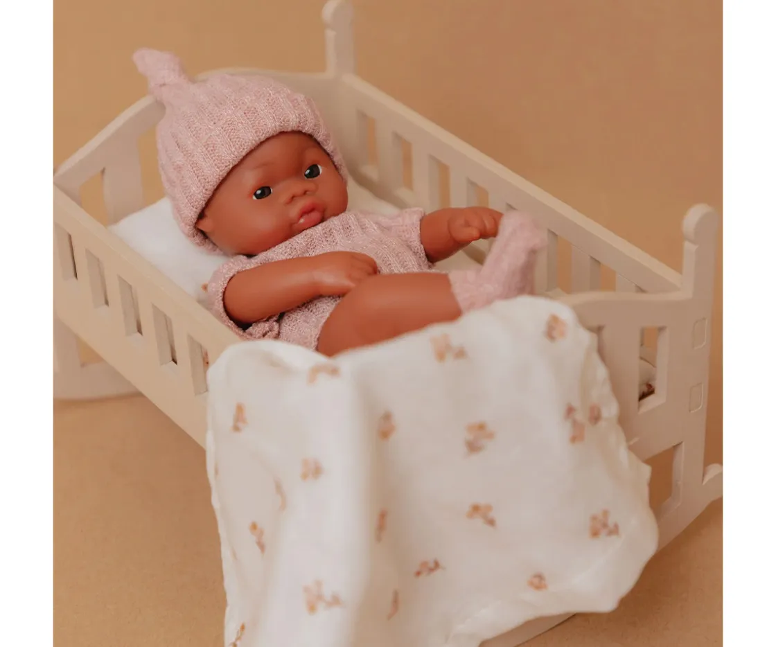 Cada Lupita incluye una preciosa cuna mecedora de madera y un set de ropa de cama compuesto por colchón, almohada y sábana, creando el escenario ideal para el juego simbólico y las rutinas de cuidado.