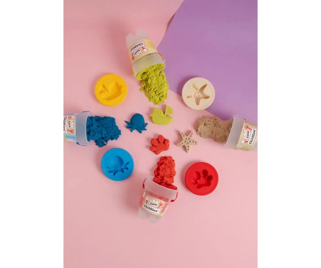 Estimula la motricidad, los sentidos y la imaginación con la textura suave y propiedades antibacterianas de la arena kinética ChildGen.